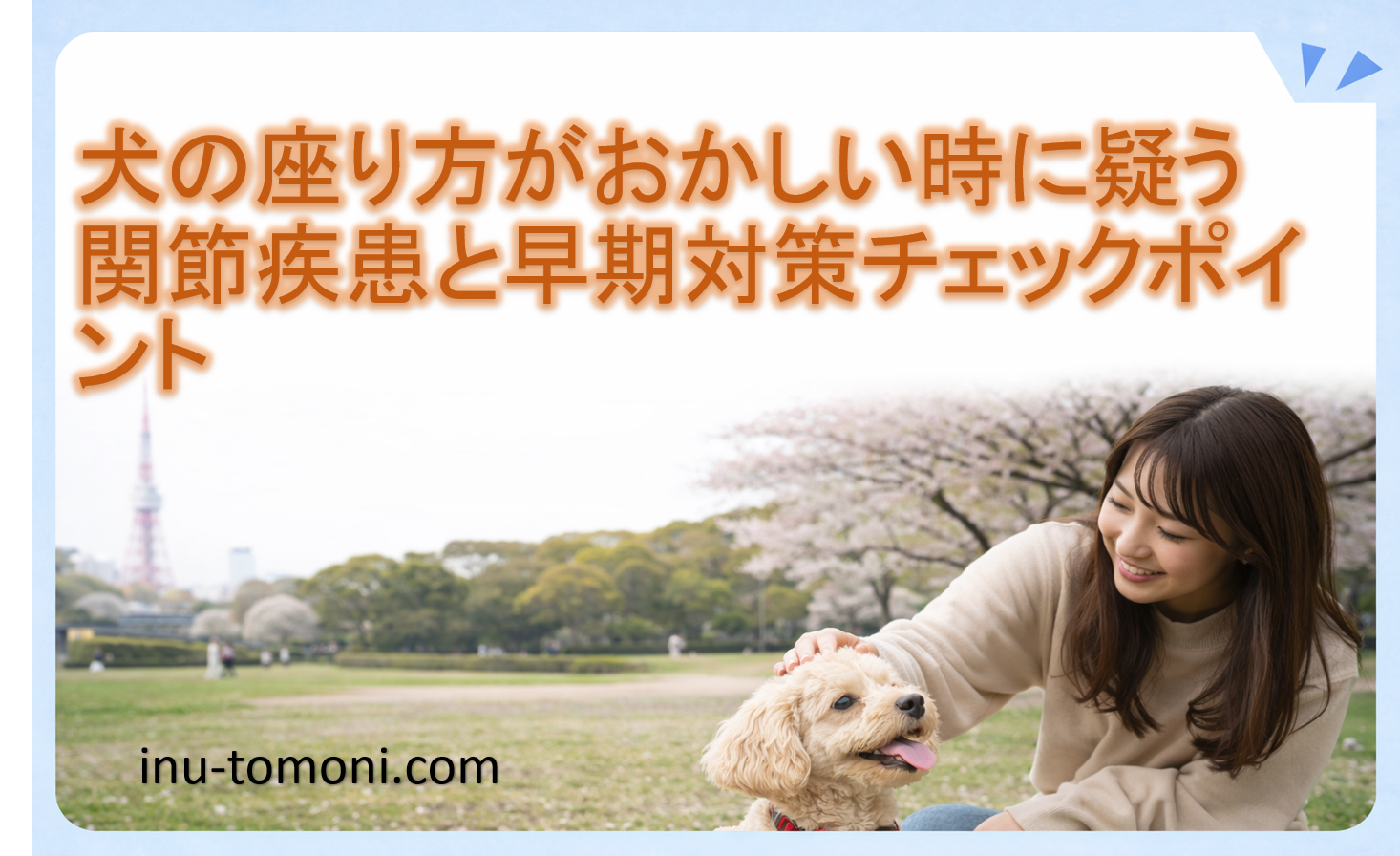 愛犬の座り方の違和感は関節トラブルのサインかも。リウマチや股関節形成不全の症状・原因・対策を解説し早期発見のポイントを紹介。